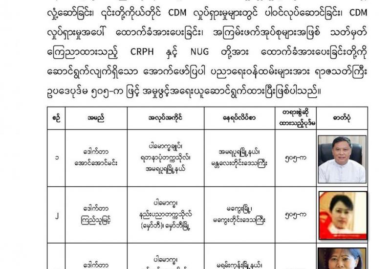နိုင်ငံတော်အတွင်း ဆူပူအုံကြွမှုများဖြစ်ပေါ်စေရေးအတွက် နောက်ကွယ်မှ သွေးထိုးလှုံ့ဆော် နည်းမျိုးစုံဖြင့် ဆောင်ရွက်လျက်ရှိသကဲ့သို့ အဖျက်အမှောင့် ဆောင်ရွက်လိုသူအချို့မှလည်း နိုင်ငံတော် ဆန့်ကျင်ရေးစာသားများအား အများပြည်သူသုံးလမ်းမကြီးများ၊ နိုင်ငံတော်ပိုင်နှင့် အများပြည်သူပိုင် အဆောက်အအုံများပေါ်တွင် ရေးသားခြင်း၊ ဆန့်ကျင်ရေးစာသားပါ ဗီနိုင်းစများ၊ ပိုစတာများ၊ စာရွက် များအား ချိတ်ဆွဲခြင်း၊ လမ်းများပေါ်တွင် ဖြန့်ကြဲခြင်းတို့ဖြင့် နိုင်ငံတော်အတွင်း မတည်မငြိမ်ဖြစ်စေရန် ရည်ရွယ်ချက်ရှိရှိဖြင့် ဆောင်ရွက်လျက်ရှိသဖြင့် လုံခြုံရေးတပ်ဖွဲ့ဝင်များအနေဖြင့် နိုင်ငံတော် တည်ငြိမ်ရေးအတွက်ရှေ့ရှု့ကာ ဥပဒေနှင့်အညီ ဖမ်းဆီးထိန်းသိမ်းဆောင်ရွက် လျက်ရှိသည်။