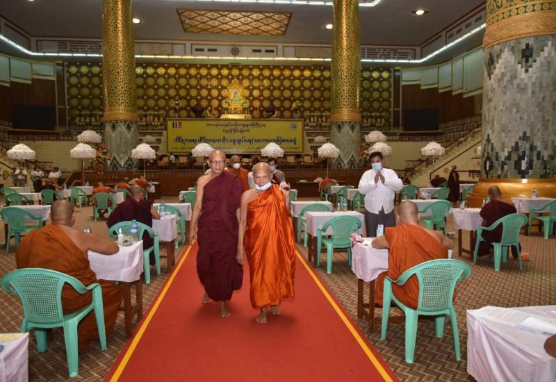 နိုင်ငံတော်သံဃမဟာနာယကအဖွဲ့ ဥက္ကဋ္ဌ အဘိဓဇမဟာရဋ္ဌဂုရု၊ အဘိဓဇ အဂ္ဂ မဟာသဒ္ဓမ္မဇောတိက ဒေါက်တာဘဒ္ဒန္တကုမာရာဘိဝံသ(ဗန်းမော်ဆရာတော်)၊ နိုင်ငံတော် သံဃမဟာ နာယကအဖွဲ့၊ တာဝန်ကျ (ပထမအဖွဲ့ခွဲ)မှ ဒုတိယဥက္ကဋ္ဌ အဂ္ဂမဟာပဏ္ဍိတ ဘဒ္ဒန္တနန္ဒသာရ(သံဖြူဇရပ်)၊ ဒုတိယဥက္ကဋ္ဌ အဂ္ဂမဟာပဏ္ဍိတ၊ အဂ္ဂမဟာသဒ္ဓမ္မဇောတိကဓဇ ဘဒ္ဒန္တကောဝိဒ(မိတ္ထီလာ)၊ တွဲဖက်အကျိုးတော်ဆောင် ဆရာတော် အဂ္ဂမဟာပဏ္ဍိတ၊