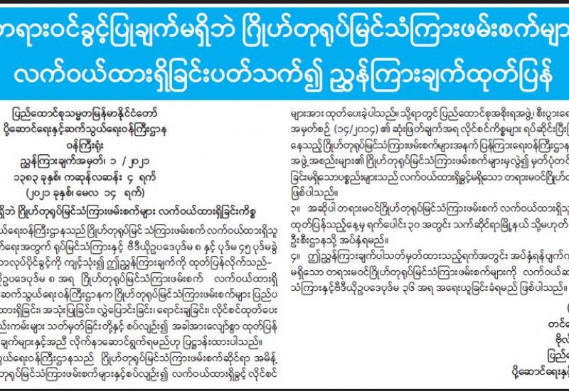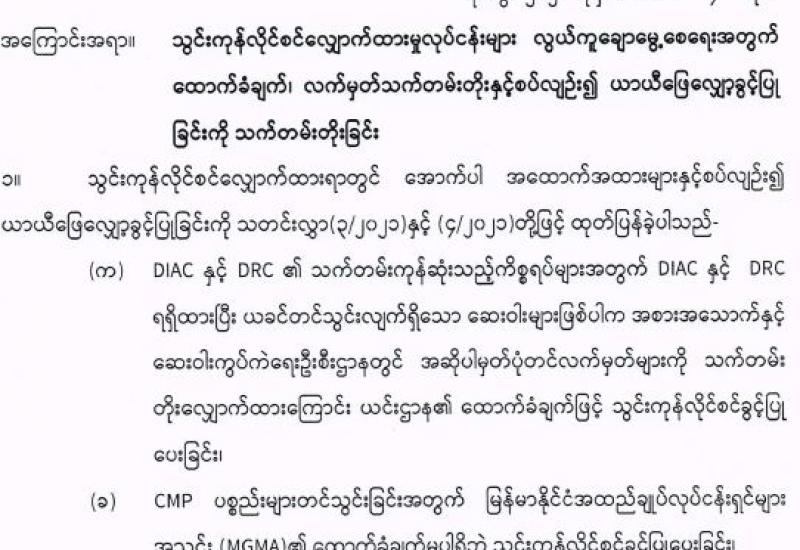 တိုင်းဒေသကြီး/ ပြည်နယ်များရှိ မြို့နယ်အချို့၌ လက်နက်ကိုင်ဆောင်လိုခြင်းမရှိဘဲ အေးချမ်းစွာနေထိုင်လိုသည့်ပြည်သူလူထုအများစုမှ ၎င်းတို့၏ သဘောဆန္ဒပြများအလျောက် ၎င်းတို့ ထံတွင်ရှိသောတူမီးသေနတ်များ၊ လက်လုပ်သေနတ်၊ ဒူးလေးနှင့် ဂျင်ကလိများအုပ်ချုပ်ရေး တာဝန်ရှိ သူများမှတစ်ဆင့်လုံခြုံရေးတပ်ဖွဲ့ဝင်များထံလာရောက်အပ်နှံခဲ့ကြောင်းသိရသည်။
