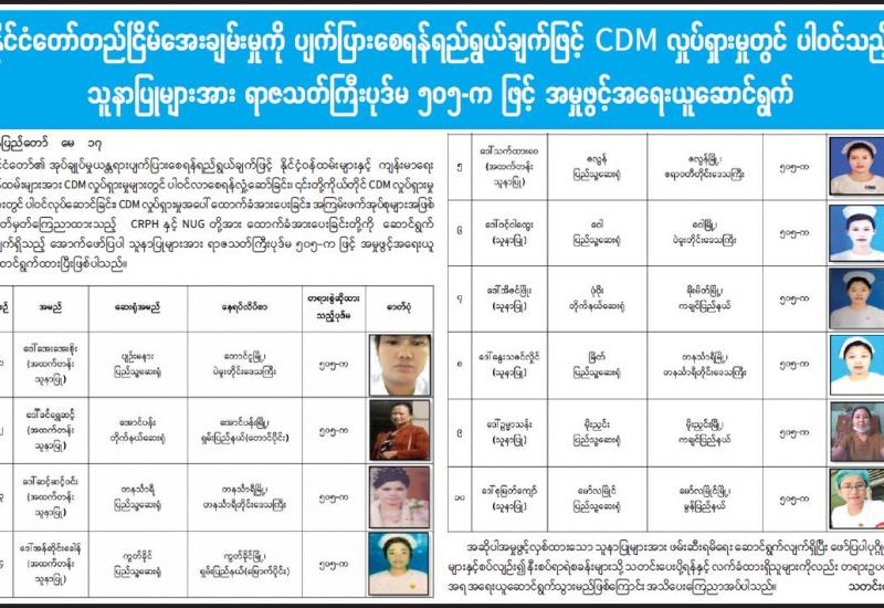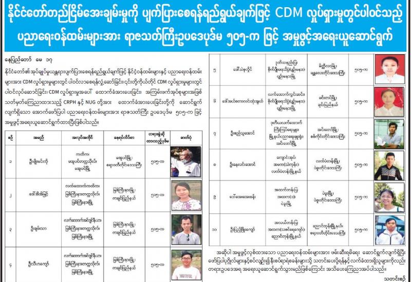 နိုင်ငံ၏ အုပ်ချုပ်မှုယန္တရားပုံမှန် လည်ပတ်ရေးနှင့် တိုင်းပြည်တည်ငြိမ် အေးချမ်းရေးကို မလိုလားသူများက CDM လှုပ်ရှားမှုတွင် မပါဝင်သည့် ကျန်းမာရေး ဝန်ထမ်းများ၊ ပညာရေးဝန်ထမ်းများ၊ ဘဏ်ဝန်ထမ်းများနှင့် အခြားဌာနဆိုင်ရာ ဝန်ထမ်းများအား ဖိအားပေးခြိမ်းခြောက်ခြင်း၊ လှုံ့ဆော်ခြင်း၊ Social Punishment ပြုလုပ်ခြင်းများ၊ ကျောင်းသားသမဂ္ဂလှုပ်ရှားမှုများ၊ ဆန္ဒပြဝါဒဖြန့်မှုများ၊ ဆူပူအကြမ်း ဖက်မှုများတွင် ပါဝင်ခြင်းများကို လုပ်ဆောင်လျက်ရှိသည်။