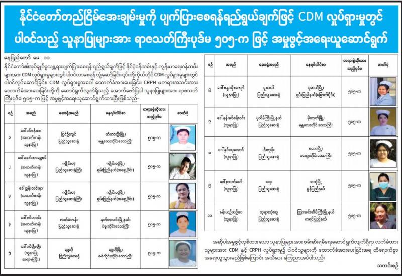 လုံခြုံရေးတပ်ဖွဲ့ဝင်များ အနေဖြင့် တည်ငြိမ်အေးချမ်းရေးနှင့် တရားဥပဒေ စိုးမိုးရေး လုပ်ငန်း များကို အရှိန်အဟုန် မြှင့် ဆောင်ရွက်လျက်ရှိရာ လူမှုကွန်ရက် စာမျက်နှာပေါ်၌ တပ်မတော်အား တိုက်ခိုက်စော်ကားသည့် စာများ ရေးသားသူများဖြစ်ကြသည့် မဝင်း စုလှိုင် (ဘ) ဦးတင်အောင်ဝင်းနှင့် ညီမ ဖြစ်သူမမေဇွန်ကို (ဘ) ဦးတင်အောင်ဝင်းတို့ နှစ်ဦးကို မေ ၁ ရက်တွင် ဖမ်းဆီး ထိန်းသိမ်းပြီး စစ်ဆေးမှုများဆောင်ရွက် ခဲ့သည်။
