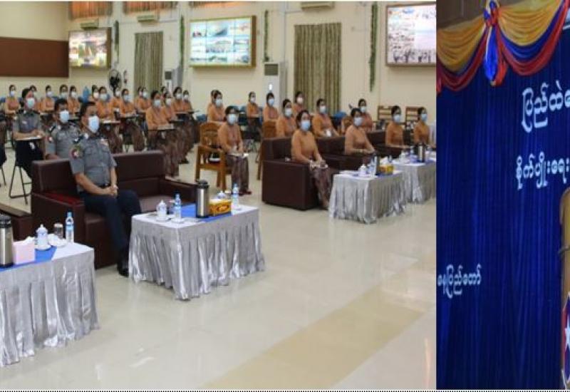 နိုင်ငံတော်စီမံအုပ်ချုပ်ရေးကောင်စီ စီမံခန့်ခွဲရေး ကော်မတီ အစည်းအဝေး (၆/၂၀၂၁) ကို ယနေ့မွန်းလွဲပိုင်းတွင် နေပြည်တော်ရှိ နိုင်ငံတော်စီမံအုပ်ချုပ်ရေး ကောင်စီဥက္ကဋ္ဌရုံး အစည်းအဝေး ခန်းမ၌ ကျင်းပရာ နိုင်ငံတော်စီမံအုပ်ချုပ်ရေးကောင်စီ ဥက္ကဋ္ဌ၊ တပ်မတော်ကာကွယ်ရေးဦးစီးချုပ် ဗိုလ်ချုပ်မှူးကြီး မင်းအောင်လှိုင် တက်ရောက်အမှာစကား ပြောကြားသည်။