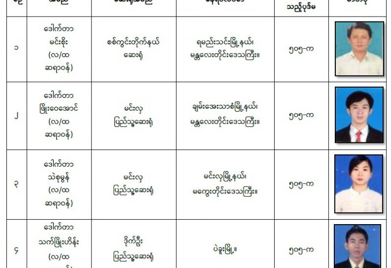 နိုင်ငံတော်၏ အုပ်ချုပ်မှုယန္တရားပျက်ပြားစေရန် ရည်ရွယ်ချက်ဖြင့် နိုင်ငံ့ ဝန်ထမ်းနှင့် ကျန်းမာရေးဝန်ထမ်းများအား CDM လှုပ်ရှားမှုများတွင် ပါဝင်လာစေရန် လှုံ့ဆော်ခြင်း၊ ၎င်းတို့ကိုယ်တိုင် CDM လှုပ်ရှားမှုများတွင် ပါဝင်လုပ်ဆောင်ခြင်း၊ CDM လှုပ်ရှားမှုအပေါ် ထောက်ခံအားပေးခြင်း၊ CRPH မတရားအသင်းအား ထောက်ခံ အားပေးခြင်းတို့ကို ဆောင်ရွက်လျက်ရှိသည့် အောက်ဖော်ပြပါ ဆရာဝန်များအား ရာဇသတ်ကြီးပုဒ်မ ၅၀၅-က ဖြင့် အမှုဖွင့်အရေးယူဆောင်ရွက်ထားပြီး ဖြစ်ပါသည်။