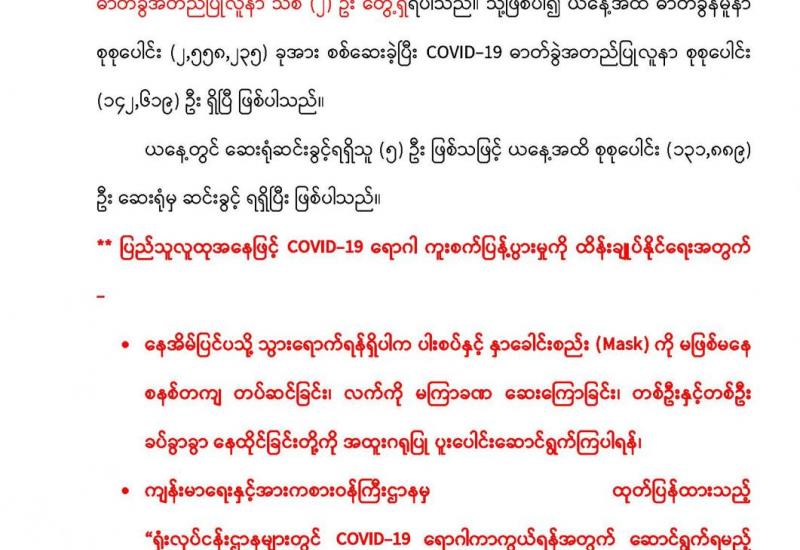 ကချင်ပြည်နယ် စီမံအုပ်ချုပ်ရေးကောင်စီက ကြီးမှူး၍ ပြည်နယ် စီမံအုပ်ချုပ်ရေးကောင်စီ ရုံးဝင်း အတွင်း မြန်မာ့ရိုးရာမိသားစု သင်္ကြန်ပွဲတော်ကို ဝန်ထမ်း မိသားစု မဟာသင်္ကြန်ပွဲတော် အဖြစ် ဧပြီ ၁၄ ရက် (တန်ခူး လဆန်း ၃ ရက်) မဟာသင်္ကြန် အကျနေ့တွင်ကျင်းပရာ ကိုဗစ်၁၉ ကာကွယ်ထိန်းချုပ်ရေး ညွှန်ကြားချက်များနှင့် အညီကျင်းပ ခဲ့သည်။