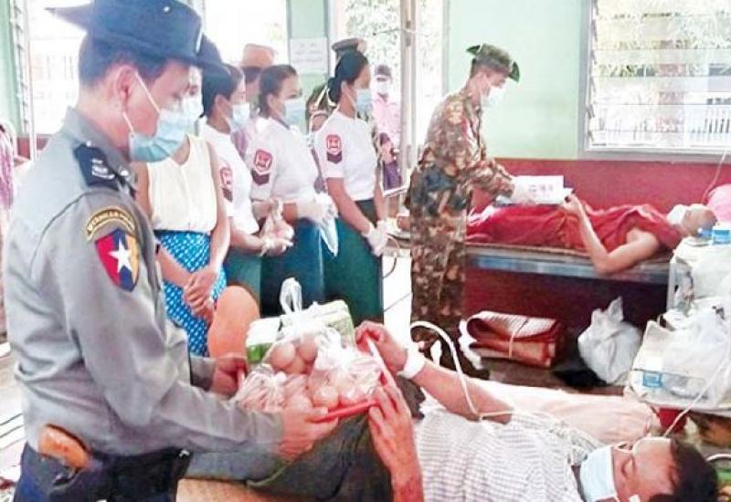 တိုင်းဒေသကြီးနှင့် ပြည်နယ်များရှိ တိုင်းရင်းသားပြည်သူ များအတွက် တပ်မတော်ဆေးရုံများနှင့် ယာယီကုသရေးဆေးရုံ များတွင် ကျန်းမာရေးစောင့်ရှောက်မှုများကို ဆောင်ရွက် ပေးလျက်ရှိရာ ဖေဖော်ဝါရီ ၅ ရက်မှ ယနေ့အထိ ပြင်ပလူနာ ၉၇၉၅၂ ဦး၊ အတွင်းလူနာ ၄၁ဝ၁ ဦးကို တပ်မတော်မှ ပါရဂူများ၊