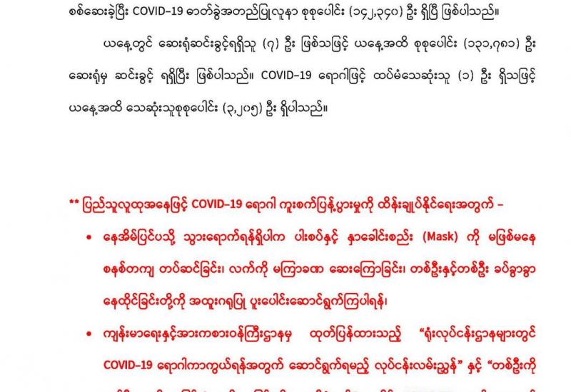 (၂၀၂၁ ခုနှစ်၊ မတ်လ (၂၅)ရက်နေ့၊ နံနက်(၁၀:၃၀)နာရီအချိန် ထုတ်ပြန်ချက်)