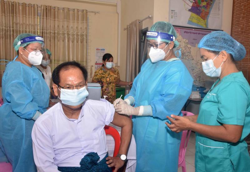 ရခိုင်ပြည်နယ်စီမံအုပ်ချုပ်ရေး ကောင်စီဥက္ကဌနှင့်အဖွဲ့ဝင်များ၊ ပြည်နယ်အဆင့်ဌာနဆိုင်ရာများ အား ယနေ့နံနက်ပိုင်းတွင် စစ်တွေမြို့ကုတင် ၅၀၀ ဆံ့ပြည်သူ့ဆေးရုံကြီး၊ ဆေးရုံအုပ်ကြီး ရုံးခန်း၌ ကိုဗစ်-၁၉ ရောဂါကာကွယ်ဆေး(COVISHIELD)ကို ဒုတိယအကြိမ်ထိုးနှံပေးလျက်ရှိသည်။