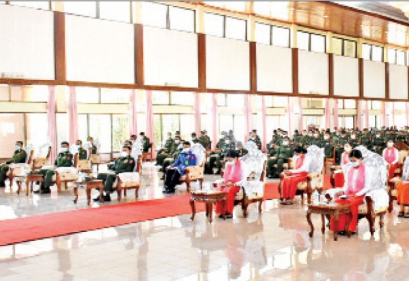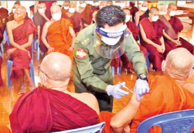 (တပ်မတော်အနေဖြင့် တိုင်းစစ်ဌာနချုပ်နယ်မြေအသီးသီးရှိ ထေရ်ကြီးဝါကြီး ဆရာတော် ကြီးများ အပါအဝင်လူမျိုးမရွေး၊ ဘာသာမရွေး အသက် ၆၅ နှစ်အထက်သက်ကြီးဘိုးဘွားများ၊ ဌာနဆိုင်ရာ ဝန်ထမ်းများနှင့် တိုင်းရင်းသားပြည်သူ များအားကိုဗစ်-၁၉ ရောဂါကာကွယ်ဆေး ထိုးနှံနိုင်ရေးအတွက်ဆေးပစ္စည်းများအား တပ်မတော်လေယာဉ်များဖြင့် သယ်ယူ ပို့ဆောင် ပေးခြင်းများနှင့် ကာကွယ်ဆေး ထိုးနှံပေးခြင်းများကို ဆောင်ရွက်ပေး လျက်ရှိသည်။