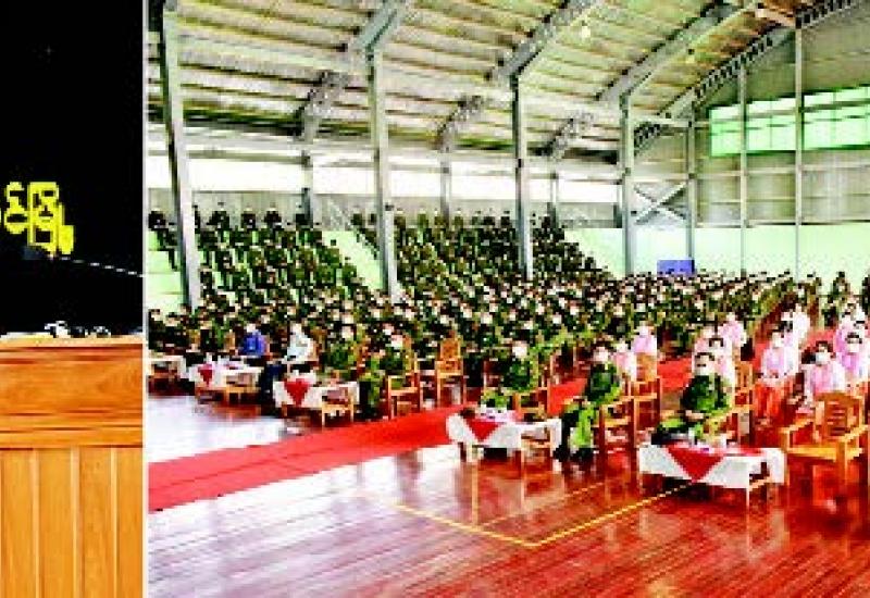 နိုင်ငံတော်စီမံအုပ်ချုပ်ရေးကောင်စီ ဒုတိယဥက္ကဋ္ဌ ဒုတိယတပ်မတော် | ကာကွယ်ရေးဦးစီးချုပ် ကာကွယ်ရေးဦးစီးချုပ်(ကြည်း) ဒုတိယဗိုလ်ချုပ် မှူးကြီး စိုးဝင်းသည် ယနေ့နံနက်ပိုင်းနှင့် မွန်းလွဲပိုင်းတို့တွင် ဗထူးတပ်နယ်နှင့် ပြင်ဦးလွင်တပ်နယ်တို့ရှိ သင်တန်းသား အရာရှိနှင့် ဗိုလ်လောင်းများ၊ သင်တန်းသားစစ်သည်များ၊ သန္ဓေစစ်သည်နှင့် မိသားစုများအား သီးခြားစီ တွေ့ဆုံ၍ အားပေးအမှာစကားပြောကြား သည်။