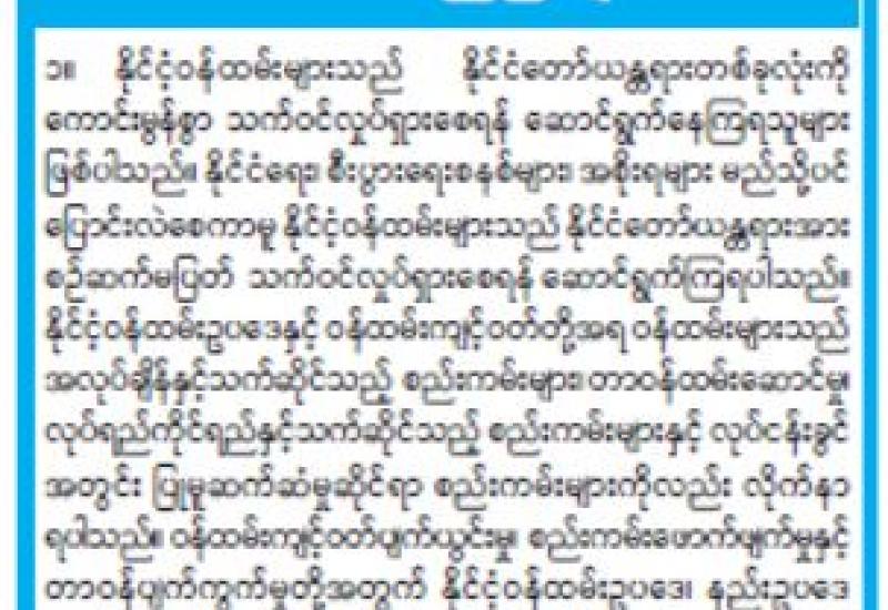 အေးချမ်းသာယာ၍ ခေတ်မီဖွံ့ဖြိုးတိုးတက်သော ဒီမိုကရေစီ ဖက်ဒရယ်ပြည်ထောင်စုကြီး တည်ဆောက်ရန်မြန်မာနိုင်ငံသူ နိုင်ငံသား၊ တိုင်းရင်းသားပြည်သူတစ်ရပ်လုံး ကြိုးပမ်းနေကြ သည်။ ဒီမိုကရေစီ ဖက်ဒရယ်ပြည်ထောင်စုကြီးသည် ရည်မှန်းချက်ပန်းတိုင်ဖြစ်ပြီး လတ်တလောလိုအပ်ချက်မှာ စည်းလုံးညီညွတ်ရေးနှင့် ငြိမ်းချမ်းရေးပင်ဖြစ်သည်။ မိမိတို့ နိုင်ငံအဖို့ စည်းလုံးညီညွတ်ရေးသည် အတိတ်၊ ပစ္စုပ္ပန် အနာဂတ်တည်းဟူသော ကာလသုံးပါးစလုံးတွင် လိုအပ်ချက် ဖြစ်သည်။ ထို့အပြင် ယနေ့နိုင်ငံတွင် ဆောင်ရွက်နေကြရသည့် ငြိမ်းချမ်းရေးလုပ်ငန်းစဉ်အတွက် အခြေခံတစ်ရပ်လည်း ဖြစ်သည်။