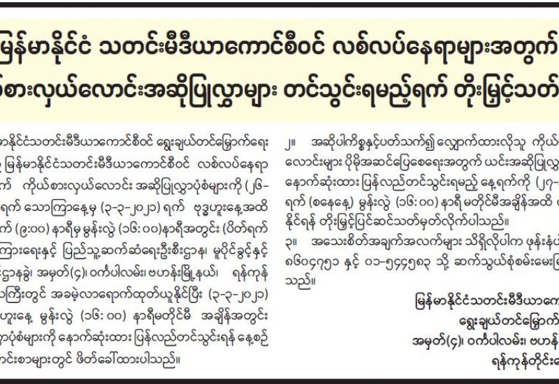 (၂၀၂၁ ခုနှစ်၊ မတ်လ (၄)ရက်နေ့ ည(၇:၀၀)နာရီအချိန် ထုတ်ပြန်ချက်)
