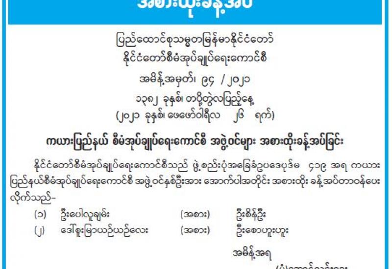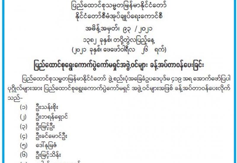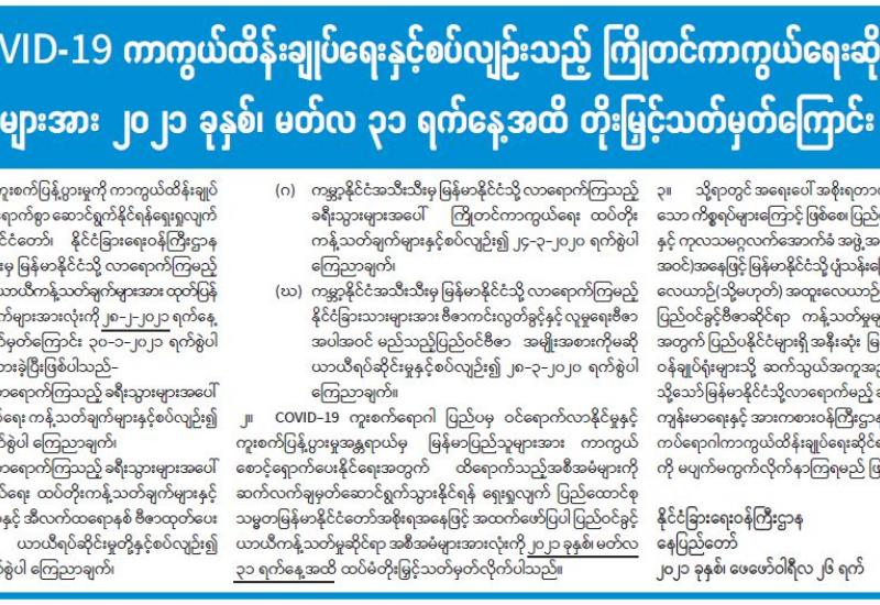 (၂၀၂၁ ခုနှစ်၊ ဖေဖော်ဝါရီလ (၂၇)ရက်နေ့ မွန်းလွဲ (၂:၀၀)နာရီအချိန် ထုတ်ပြန်ချက်)