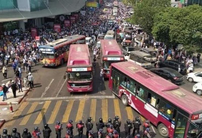 ပြည်ထောင်စုနယ်မြေ၊ နေပြည်တော်၊ ပျဉ်းမနား၊ ယုဇန လမ်းသွယ်တွင် ယနေ့ မွန်းလွဲ ၁ နာရီခွဲက လူစုလူဝေးပြုလုပ်ကာ လမ်းအချို့အား အကာအရံ အတားအဆီးများဖြင့် ပိတ်ဆို့ခြင်း၊ ပလပ်စတစ် ပုံးကြီးများကို ထက်ခြမ်းခြမ်း၍ ရဲတပ်ဖွဲ့သုံး (ဒိုင်း)ကြီးများသဖွယ်ပြုလုပ်၍ တုတ်/ ဓား ကိုင်ဆောင်ထား သူ ၂၅၀ ကျော်ခန့်မှာ ထိုင်သပိတ်ပြုလုပ်၍ ကြွေးကြော်သံများဖြင့် အော်ဟစ်ဆူပူ လူစုလူဝေး ပြုလုပ်နေကြောင်း သိရသည်။