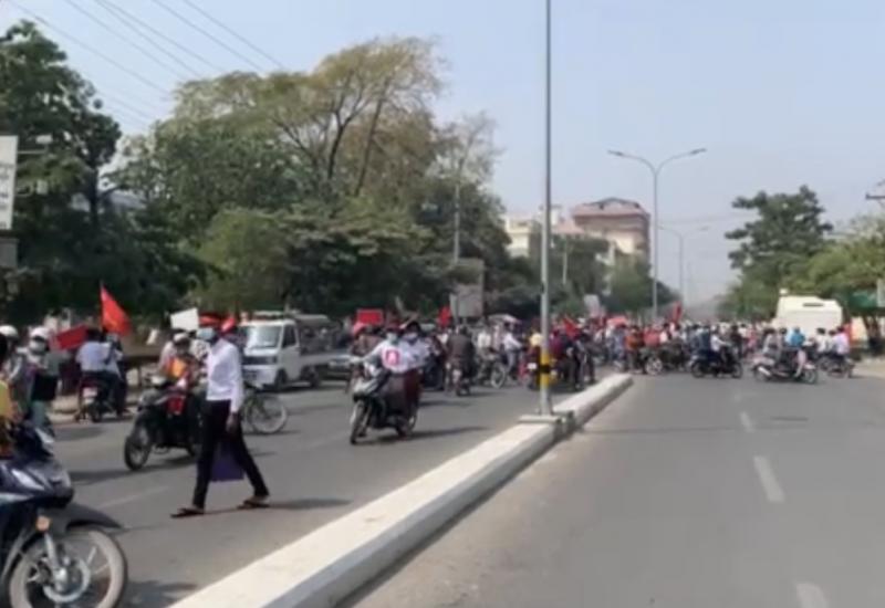 မန္တလေးတိုင်းဒေသကြီး၊ ချမ်းအေးသာစံမြို့နယ်၊ လမ်း(၃၀)(၆၈/၇၀) လမ်းကြားတွင် လူစုလူဝေး ၄၀၀ ကျော်ခန့်သည်လည်းကောင်း၊ မွန်းလွဲပိုင်းတွင် ချမ်းအေးသာစံမြို့နယ်၊ (၃၅/၈၅) လမ်းကြား မြတောင် ကျောင်းအရှေ့တွင် လူစုလူဝေး ၂၅၀ ခန့်သည်လည်းကောင်း၊ (၆၂/၁၀၄) (A) လမ်းထောင့်တွင် အင်အား ၁၀၀ သည်လည်းကောင်း အများပြည်သူသွားလာအသုံးပြုနေကြသည့် လမ်းမများပေါ်တွင် လမ်းပိတ်ဆို့ မှုများ ပြုလုပ်ကာ ကြွေးကြော်သံအမျိုးမျိုး အော်ဟစ်ဆူပူလျက်ရှိကြောင်း သိရသည်။