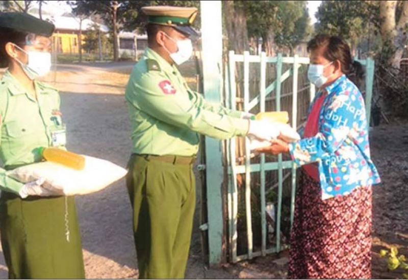 ကိုဗစ်-၁၉ ရောဂါ ကာကွယ်၊ ထိန်းချုပ်၊ ကုသမှု လုပ်ငန်းများ ဆောင်ရွက်နေစဉ် ကာလအတွင်း သွားလာမှုကန့်သတ်ချက်များကြောင့် ဒေသခံပြည်သူများ စားရေးအဆင်ပြေ စေရန်အတွက် နယ်မြေခံတပ်မတော် သားများက ဆန်၊ ဆီနှင့် စားသောက်ဖွယ်ရာများကို အိမ်အရောက် လိုက်လံ ပေးဝေလှူဒါန်းလျက်ရှိသည်။