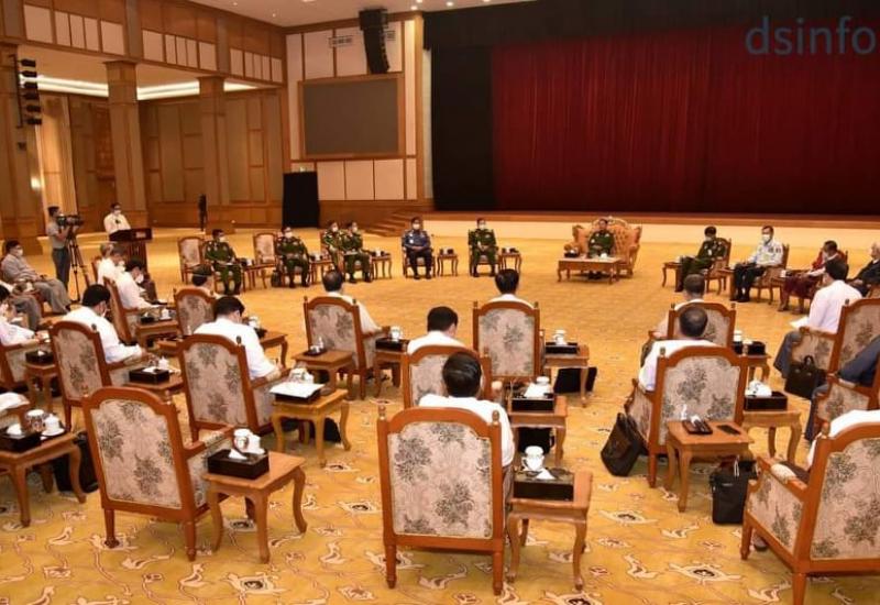 နိုင်ငံတော်စီမံအုပ်ချုပ်ရေးကောင်စီဥက္ကဋ္ဌ၊ တပ်မတော်ကာကွယ်ရေးဦးစီးချုပ် ဗိုလ်ချုပ်မှူးကြီး မင်းအောင်လှိုင်သည် ယနေ့နံနက်ပိုင်းတွင် နေပြည်တော်ရှိ နိုင်ငံတော် သမ္မတအိမ်တော် ငုရွှေဝါခန်းမ၌ မြန်မာနိုင်ငံဘဏ်များအသင်း နာယက၊ ဥက္ကဋ္ဌနှင့် တာဝန်ရှိသူများ၊ ပုဂ္ဂလိက ဘဏ်များမှ ဥက္ကဋ္ဌများ၊ ဒုတိယဥက္ကဋ္ဌများ၊ တာဝန်ရှိသူများနှင့် တွေ့ဆုံသည်။
