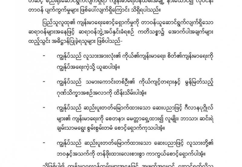 ကိုဗစ်-၁၉ ကာကွယ်ဆေး ဆက်လက် ထိုးနှံမည့်အစီအစဉ်နှင့် ပတ်သက်၍ သတင်းထုတ်ပြန်ချက်