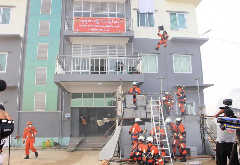 ပဲခူးမြို့၊ ဥဿာမြို့သစ်၊(၇)ရပ်ကွက်၊ ဓမ္မစေတီလမ်းရှိ (၆)ထပ်စုပေါင်းရုံးတွင် ယနေ့ နံနက် ၈နာရီက သဘာဝဘေးအန္တရာယ်ဖြစ်သည့် မြေငလျင်ဘေးအန္တရာယ်ကြုံတွေ့လာပါက အရေးပေါ်ရှာဖွေ ကယ်ဆယ်ရေး လုပ်ငန်းများကို အချိန်နှင့်တပြေးညီ ဆောင်ရွက်နိုင် မီးသတ်တပ်ဖွဲ့ဝင်များက တပ်ခွဲအဆင့် မြေငလျင်ဘေး အန္တရာယ် ရှာဖွေကယ်ဆယ်ရေး ဇာတ်တိုက်လေ့ကျင့်သရုပ်ပြခြင်း အခမ်းအနားကျင်းပ ပြုလုပ်ခဲ့သည်။