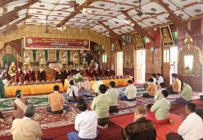 မွန်ပြည်နယ် မော်လမြိုင်မြို့၏ ကျက်သရေဆောင်သမိုင်းဝင် သွားတော်ဓာတ်နှင့် ဆံတော်ရှင် ကျိုက်သလ္လံစေတီ တော်မြတ်ကြီး ရွှေထီးတော်၊ ငှက်မြတ်နားတော်၊ စိန်ဖူးတော်တင် မဟာမင်္ဂလာအခမ်း အနားအကြို အသံမစဲ မဟာပဋ္ဌာန်းဖွင့်ပွဲအခမ်းအနားကို ယနေ့ နံနက် ၉ နာရီက အဆိုပါရင်ပြင်တော်ရှိ ပဋ္ဌာန်းဓမ္မာရုံတွင် ကျင်းပသည်။