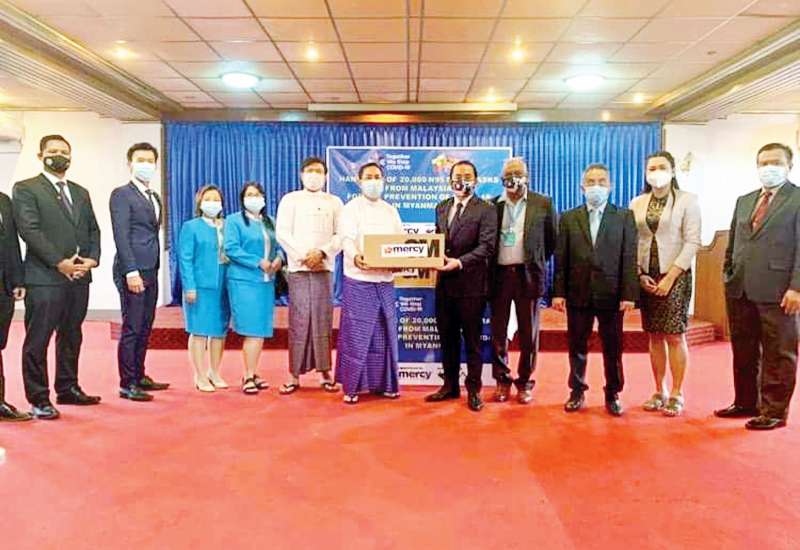 မြန်မာနိုင်ငံ ကိုဗစ်-၁၉ ကပ်ရောဂါ ကာကွယ်၊ ထိန်းချုပ်၊ ကုသရေး လုပ်ငန်းများတွင် အထောက်အကူပြုစေရန် ရည်ရွယ်ချက်ဖြင့် မလေးရှား နိုင်ငံက N95 နှာခေါင်းစည်းအရေ အတွက် ၂၀၀၀၀ ကို ပထမအသုတ် အဖြစ် ပေးအပ်လှူဒါန်းခြင်း အခမ်း အနားကို ရန်ကုန်မြို့ရှိ နိုင်ငံခြားရေး ဝန်ကြီးဌာန၌ ယနေ့မွန်းလွဲ ၃ နာရီ တွင် ကျင်းပသည်။