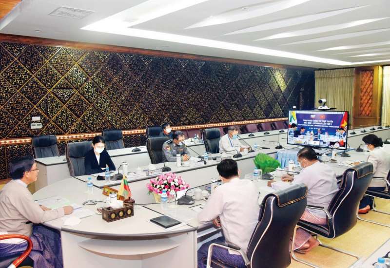 (၉)ကြိမ်မြောက် မြန်မာ-ဗီယက်နမ် နိုင်ငံခြားရေးဝန်ကြီးဌာနများအကြား မူဝါဒရေးရာညှိနှိုင်း ဆွေးနွေးပွဲကို ယနေ့ နံနက် ၉ နာရီခွဲတွင် နေပြည်တော်ရှိ နိုင်ငံခြားရေးဝန်ကြီးဌာန၌ ဗီဒီယိုကွန်ဖရင့်ဖြင့် ကျင်းပသည်။