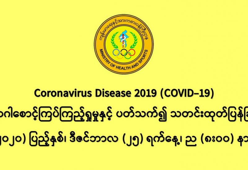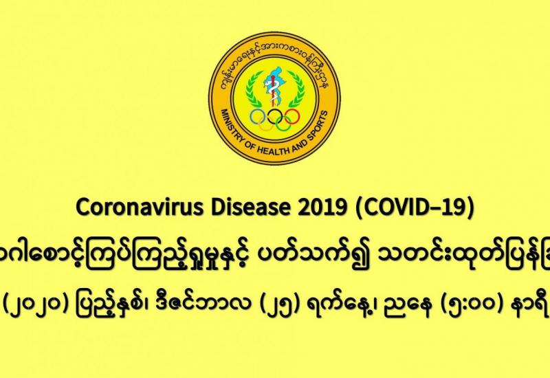 (၂၄-၁၂-၂၀၂၀) ရက်နေ့၊ ည (၈:၀၀) နာရီမှ (၂၅-၁၂-၂၀၂၀) ရက်နေ့၊ ည (၈:၀၀) နာရီ အတွင်း ဓာတ်ခွဲနမူနာ စုစုပေါင်း (၁၉,၅၄၃) ခုအား စစ်ဆေးပြီးစီးခဲ့ရာ COVID-19 ရောဂါ ဓာတ်ခွဲအတည်ပြု လူနာသစ် (၇၅၈) ဦး တွေ့ရှိရပါသည်။