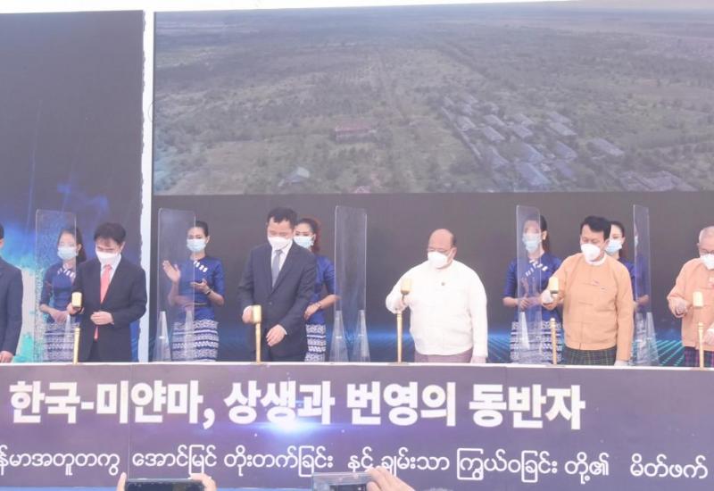 ကိုရီးယား-မြန်မာစက်မှုဇုန်စီမံကိန်း (Korea-Myanmar Industrial complex, KMIC) ပန္နက်တင် အခမ်းအနားကို ယနေ့နံနက်ပိုင်းတွင် ရန်ကုန်တိုင်းဒေသကြီး၊ လှည်းကူးမြို့နယ်ရှိ စီမံကိန်း ဧရိယာ၌ ကျန်းမာရေးနှင့်အားကစား ဝန်ကြီးဌာန၏ COVID-19 ကာကွယ်ထိန်းချုပ် ခြင်းဆိုင်ရာ လမ်းညွှန်ချက်များနှင့်အညီ ကျင်းပသည်။