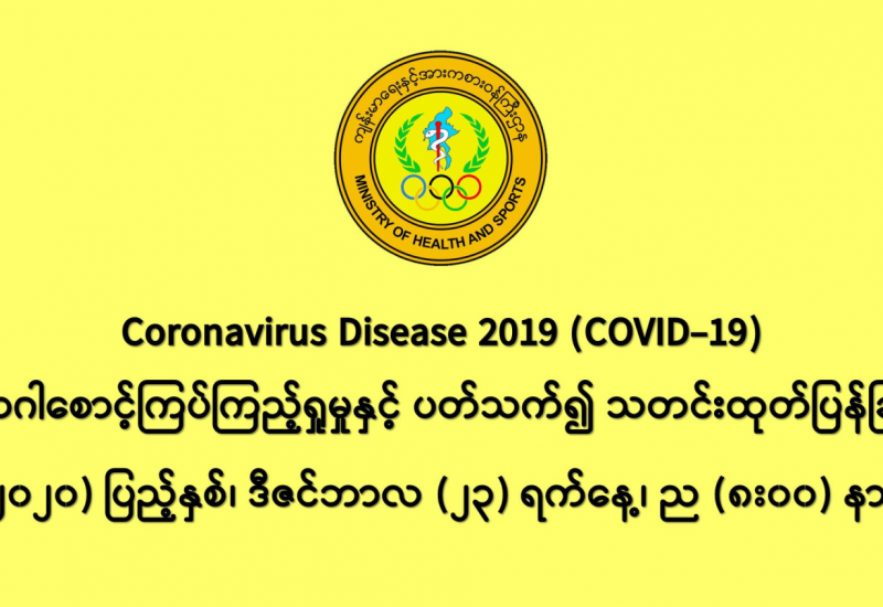 (၂၂-၁၂-၂၀၂၀) ရက်နေ့၊ ည (၈:၀၀) နာရီမှ (၂၃-၁၂-၂၀၂၀) ရက်နေ့၊ ည (၈:၀၀) နာရီ အတွင်း ဓာတ်ခွဲနမူနာ စုစုပေါင်း (၂၃,၀၇၂) ခုအား စစ်ဆေးပြီးစီးခဲ့ရာ COVID-19 ရောဂါ ဓာတ်ခွဲအတည်ပြု လူနာသစ် (၉၂၃) ဦး တွေ့ရှိရပါသည်။