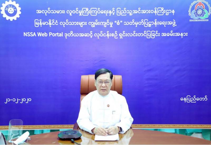 မြန်မာနိုင်ငံလုပ်သားများ ကျွမ်းကျင်မှု “စံ” သတ်မှတ်ပြဋ္ဌာန်းရေးအဖွဲ့ NSSA Web Portal ဒုတိယအဆင့် လုပ်ငန်းစဉ် ရှင်းလင်းတင်ပြခြင်း အခမ်းအနားကို ယနေ့နံနက် ၁၀ နာရီတွင် နေပြည်တော်ရှိ အလုပ်သမား၊ လူဝင်မှုကြီးကြပ်ရေးနှင့် ပြည်သူ့အင်အားဝန်ကြီးဌာန အစည်းအဝးခန်းမ၌ ဗီဒီယိုကွန်ဖရင့်စနစ်ဖြင့် ကျင်းပသည်။