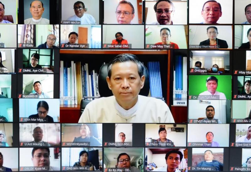 အမျိုးသားပညာရေး မဟာဗျူဟာစီမံကိန်း (၂၀၂၁-၂၀၃၀) (National Education Strategic Plan-NESP 2021-2030) ရေးဆွဲခြင်းအတွက် တက္ကသိုလ်၊ ဒီဂရီကောလိပ်များမှ ဆရာ ဆရာမများနှင့် ညှိနှိုင်းအစည်းအဝေး ပထမနေ့ကို ယနေ့နံနက် ၉ နာရီတွင် နေပြည်တော်ရှိ ပညာရေးဝန်ကြီးဌာန၌ ဗီဒီယိုကွန်ဖရင့်စနစ်ဖြင့် ကျင်းပသည်။