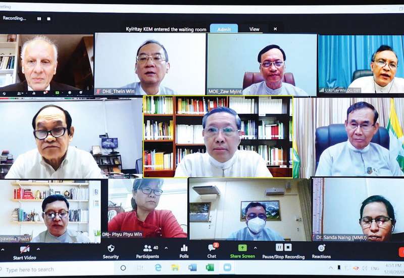 ပညာရေးဝန်ကြီးဌာနက ကြီးမှူးကျင်းပသော ၂၁ ရာစု မြန်မာနိုင်ငံ အဆင့်မြင့်ပညာရေးကဏ္ဍ၏ အခွင့်အလမ်းသစ် များနှင့် စိန်ခေါ်မှုသစ်များ (New Challenges and Opportunities for Higher Education in Myanmar in the 21st Century) ခေါင်းစဉ်ဖြင့် ညှိနှိုင်းအစည်းအဝေးပွဲကို ယမန်နေ့ ညနေ ၅ နာရီခွဲတွင် Online စနစ်ဖြင့် ကျင်းပ သည်။
