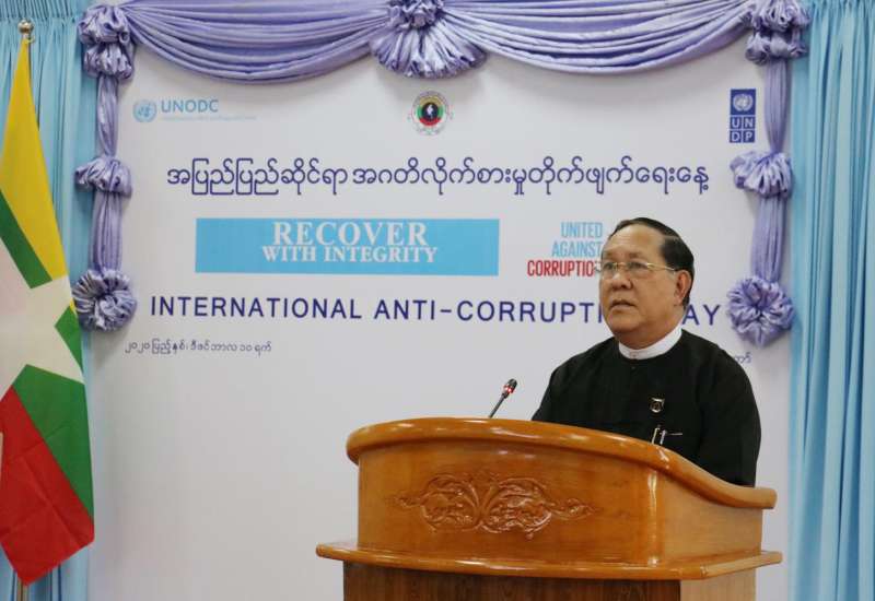 ပြည်ထောင်စုတရားသူကြီးချုပ် ဦးထွန်းထွန်းဦး အပြည်ပြည်ဆိုင်ရာ အဂတိလိုက်စားမှု တိုက်ဖျက်ရေးနေ့ အထိမ်းအမှတ် အခမ်းအနားတွင် ပြောကြားသည့် အမှာစကား