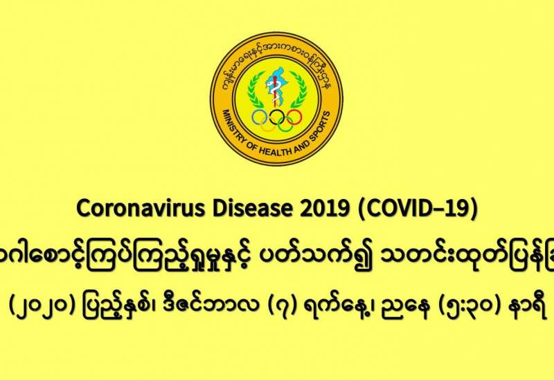 (၆-၁၂-၂၀၂၀) ရက်နေ့၊ ည (၈:၀၀) နာရီမှ (၇-၁၂-၂၀၂၀) ရက်နေ့၊ ည (၈:၀၀) နာရီ အတွင်း ဓာတ်ခွဲနမူနာ စုစုပေါင်း (၁၉,၃၇၉) ခုအား စစ်ဆေးပြီးစီးခဲ့ရာ COVID-19 ရောဂါ ဓာတ်ခွဲအတည်ပြု လူနာသစ် (၁,၂၇၆) ဦး တွေ့ရှိရပါသည်။