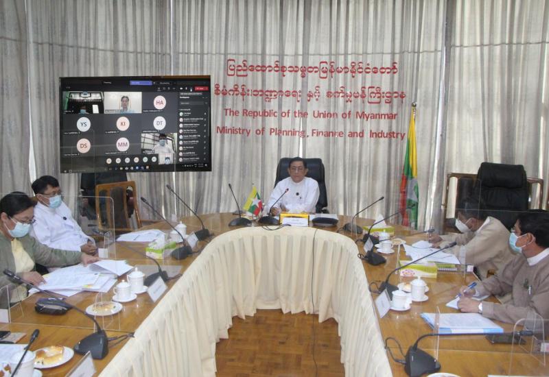 မြန်မာ့လယ်ယာဖွံ့ဖြိုးရေးဘဏ်က ဆောင်ရွက်လျက်ရှိသော စိုက်ပျိုးရေးနှင့် ကျေးလက် ဖွံ့ဖြိုးရေး အကောင်အထည်ဖော် စီမံကိန်း (JICA, Two Step Loan) ဦးဆောင်ကော်မတီ အစည်းအဝေးကို ယနေ့နံနက်ပိုင်းတွင် ဗီဒီယိုကွန်ဖရင့်စနစ်ဖြင့် ကျင်းပသည်။