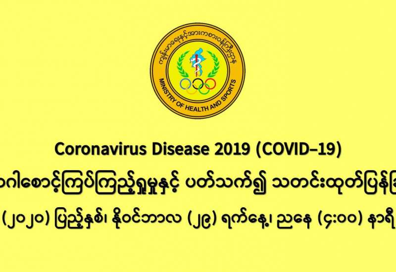 (၂၈-၁၁-၂၀၂၀) ရက်နေ့၊ ည (၈:၀၀) နာရီမှ (၂၉-၁၁-၂၀၂၀) ရက်နေ့၊ ည (၈:၀၀) နာရီ အတွင်း ဓာတ်ခွဲနမူနာ စုစုပေါင်း (၁၅,၂၂၀) ခုအား စစ်ဆေးပြီးစီးခဲ့ရာ COVID-19 ရောဂါ ဓာတ်ခွဲအတည်ပြု လူနာသစ် (၁,၅၀၉) ဦး တွေ့ရှိရပါသည်။