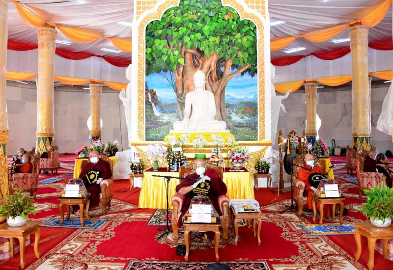နေပြည်တော် ဒက္ခိဏသီရိမြို့နယ် ရာဇသင်္ဂဟလမ်း ကံ့ကော်ပန်းအဝိုင်းအနီးတွင် တည်ဆောက် ပူဇော်ထားသော ထာဝရငြိမ်းချမ်းရေးစေတီတော် ပထမအကြိမ် ဗုဒ္ဓပူဇနိယပွဲတော်နှင့် ဗုဒ္ဓါဘိသေက အနေကဇာတင် မဟာမင်္ဂလာအခမ်းအနားကို ယနေ့နံနက် ၉ နာရီတွင် ထာဝရငြိမ်းချမ်းရေးစေတီတော် ဂန္ဓကုဋိတိုက်အတွင်း၌ COVID-19 ကာကွယ် တားဆီးရေး ဆိုင်ရာ ညွှန်ကြားချက်များနှင့်အညီ ကျင်းပသည်။