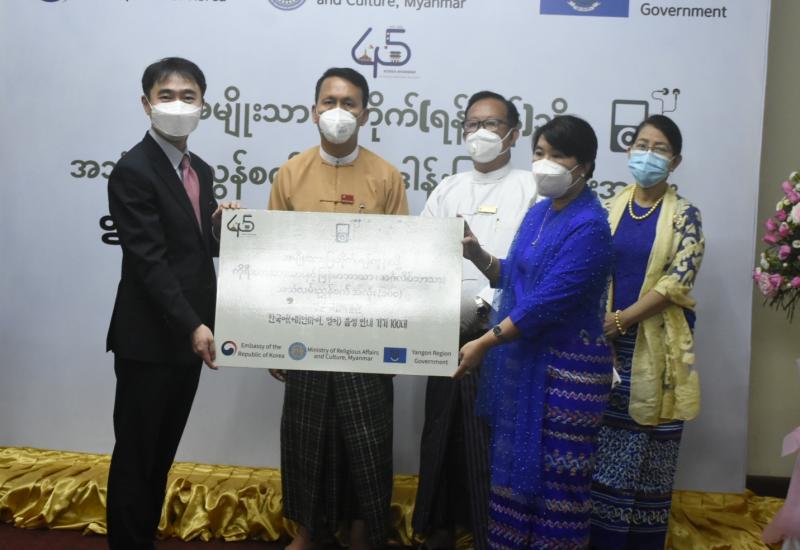သာသနာရေးနှင့်ယဉ်ကျေးမှုဝန်ကြီးဌာန၊ အမျိုးသားပြတိုက်(ရန်ကုန်)သို့ မြန်မာနိုင်ငံဆိုင်ရာ ကိုရီးယားသမ္မတနိုင်ငံသံရုံးမှ အသံလမ်းညွှန်စက်အလုံး ၁၀၀ လှူဒါန်းခြင်းကို ဒဂုံမြို့နယ်၊ ပြည်လမ်းရှိ အဆိုပါ ပြတိုက်တွင် ယမန်နေ့ နံနက်က ကျင်းပခဲ့သည်။
