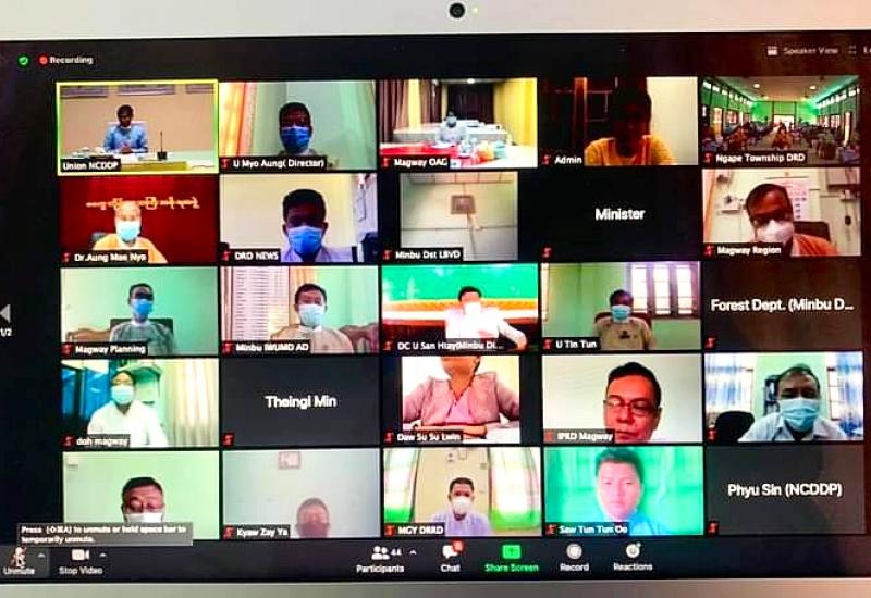 မကွေးတိုင်းဒေသကြီး မင်းဘူးခရိုင် ငဖဲမြို့နယ် လူထုဗဟိုပြုစီမံကိန်း မိတ်ဆက်ခြင်း အလုပ်ရုံ ဆွေးနွေးပွဲကို Video Conferencing စနစ်ဖြင့် နိုဝင်ဘာလ ၁၉ ရက် ယနေ့နံနက် ၉ နာရီခွဲက ဆောင်ရွက်ခဲ့ရာ မကွေးတိုင်းဒေသကြီး ဝန်ကြီးချုပ် ဒေါက်တာအောင်မိုးညို online ဖြင့် တက်ရောက်၍ အဖွင့်အမှာစကား ပြောကြားခဲ့သည်။