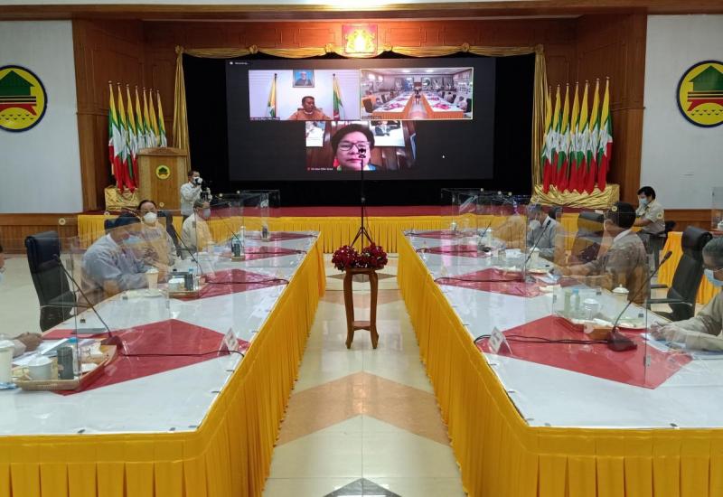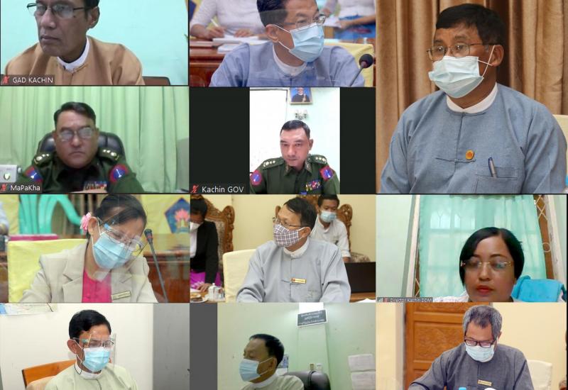 ကချင်ပြည်နယ်အတွင်းရှိ နေရပ်စွန့်ခွာရသူများ (IDPs) ပြန်လည်နေရာချထားမှု အကောင်အထည်ဖော်ရေးဆိုင်ရာ လုပ်ငန်းအဖွဲ့ ညှိနှိုင်းအစည်းအဝေးကို ယမန်နေ့ ညနေ ပိုင်းတွင် ဗီဒီယိုကွန်ဖရင့်ဖြင့်ကျင်းပသည်။