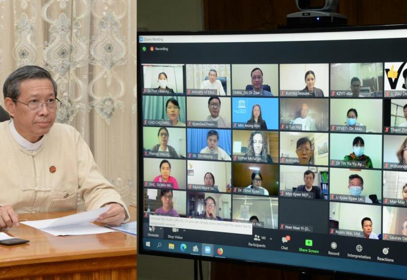 ပညာရေးကဏ္ဍလေ့လာသုံးသပ်ခြင်း (Education Sector Analysis) ဆိုင်ရာ အစည်းအဝေးကို ယနေ့မွန်းလွဲ ၂ နာရီ က ပညာရေးဝန်ကြီးဌာနနှင့် ယူနက်စကို-မြန်မာတို့ ပူးပေါင်း၍ အွန်လိုင်းမှ ကျင်းပသည်။