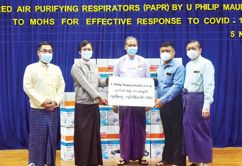 ကျန်းမာရေးနှင့်အားကစားဝန်ကြီးဌာန၊ ရန်ကုန်ပြည်သူ့ ဆေးရုံကြီးနှင့် ရန်ကုန် ခုတင် ၅၀၀ အထူးကုဆေးရုံကြီးသို့ အလှူရှင် အမေရိကန်နိုင်ငံ Seattle မြို့နေ Hissho Sushi ၏ တည်ထောင်သူ Mr. Philip Maung မှ Powered Air-purifying Respirator (PAPR)များ ပေးအပ် လှူဒါန်းပွဲ အခမ်းအနားကို ယနေ့ ညနေ ၃နာရီခွဲက ရန်ကုန်မြို့ ဒဂုံမြို့နယ် ဇီဝကလမ်း အမှတ်(၅)ရှိ ဆေးသုတေသနဦးစီးဌာန(ရုံးချုပ်) အစည်းအဝေးခန်းမ၌ ပြုလုပ်သည်။