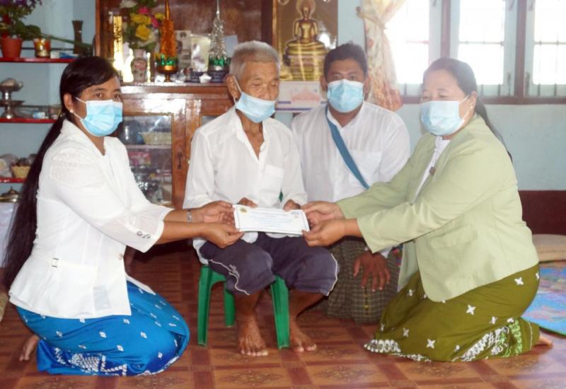 ရှမ်းပြည်နယ်(အရှေ့ပိုင်း)မိုင်းဆတ်မြို့၌ COVID-19 စီးပွားရေးကုစားမှုအစီအစဉ်အရ အသက်(၈၀) နှစ်မှ (၈၅) နှစ်ကြားရှိ ဘိုးဘွားများအား ထောက်ပံ့ငွေပေးအပ်ခြင်းကို ယမန်နေ့မွန်းလွဲ(၂)နာရီက အိမ်တိုင်ရာ ရောက် သွားရောက် ထောက်ပံ့ပေးအပ်ခဲ့ကြောင်းသိရသည်။