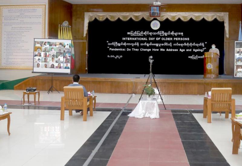 အပြည်ပြည်ဆိုင်ရာသက်ကြီးရွယ်အိုများနေ့ ဂုဏ်ပြုအခမ်းအနားကို ယနေ့နံနက်(၁၁)နာရီ တွင် လူမှုဝန်ထမ်း၊ ကယ်ဆယ်ရေးနှင့် ပြန်လည်နေရာချထားရေးဝန်ကြီးဌာန၊ ဝန်ကြီးရုံး စုပေါင်း ခန်းမ၌ Video Conferencing စနစ်ဖြင့်ကျင်းပသည်။