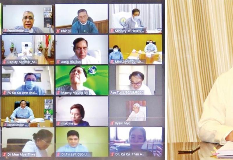 ဟိုတယ်နှင့် ခရီးသွားလာရေးဝန်ကြီးဌာနသည် ကိုဗစ်-၁၉ ကာလအတွင်းနှင့် ကိုဗစ်-၁၉ အလွန် ကာလများတွင် မြန်မာနိုင်ငံ၏ ခရီးသွားလုပ်ငန်း ပြန်လည်ဖွံ့ဖြိုးလာစေရေးနှင့် ဦးမော့ လာစေရေးအတွက် ကိုဗစ်-၁၉ ဆိုင်ရာ ခရီးသွားလုပ်ငန်းကုစားမှု အစီအစဉ်ကို နိုင်ငံတော်မှ ထုတ်ပြန်ထားရှိသည့် COVID-19 Economic Relief Plan (CERP) အပေါ် အခြေခံ၍ ရေးဆွဲခဲ့ပြီး ဖြစ်ရာ အဆိုပါ အစီအစဉ်အပေါ် ဝန်ကြီးဌာနမှ ဆောင်ရွက်ပြီးစီးမှုနှင့် ဆက်လက် ဆောင်ရွက် မည့် အစီအစဉ်များ ရှင်းလင်းတင်ပြဆွေးနွေးခြင်းကို ယနေ့နံနက်ပိုင်းတွင် ဟိုတယ်နှင့် ခရီးသွားလာရေးဝန်ကြီးဌာနမှ Video Conferencing ဖြင့် ကျင်းပသည်။