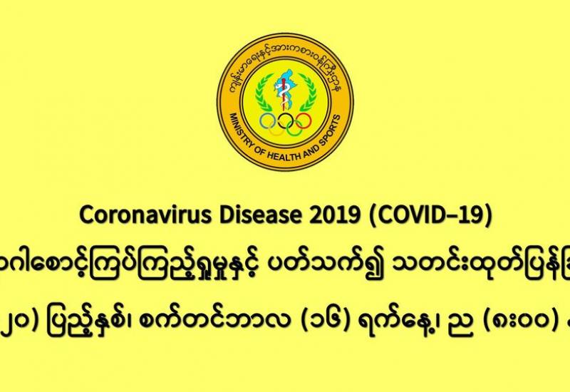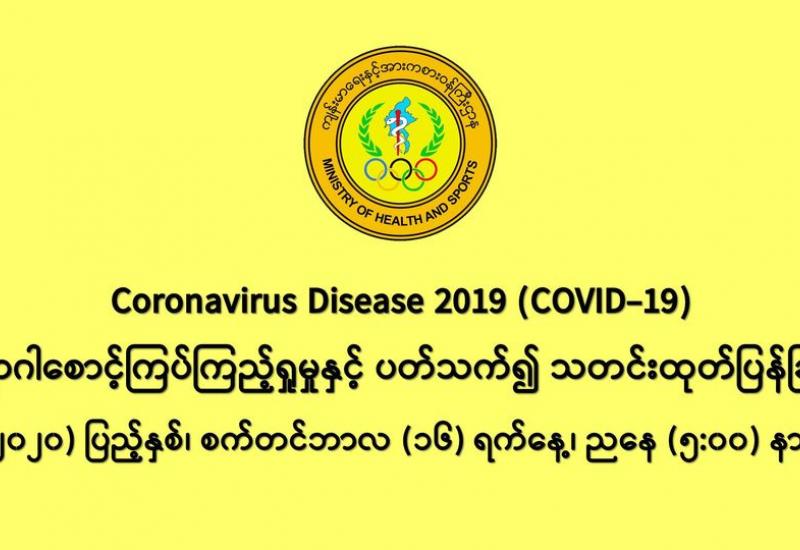 ၁။ (၁၆-၉-၂၀၂၀) ရက်နေ့၊ နံနက် (၈:၀၀) နာရီမှ ည (၈:၀၀) နာရီအတွင်း COVID-19 ဓာတ်ခွဲ စစ်ဆေးချက်များအရ -