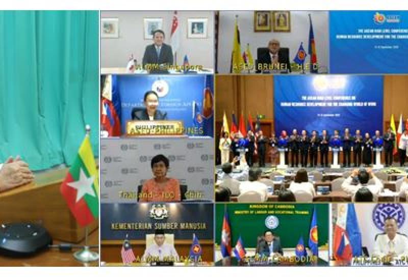 ပြောင်းလဲလာသော အလုပ်အကိုင်လောကအတွက် လူ့စွမ်းအားအရင်းအမြစ် ဖွံ့ဖြိုး တိုးတက်ရေးဆိုင်ရာ အာဆီယံဝန်ကြီးများအဆင့် ညီလာခံကို ယနေ့မွန်းလွဲ ၁၂ နာရီခွဲတွင် ဗီယက်နမ်နိုင်ငံ၊ အလုပ်သမား၊ မသန်စွမ်းနှင့်လူမှုရေးဝန်ကြီးဌာနမှ video conference ဖြင့် ကျင်းပသည်။