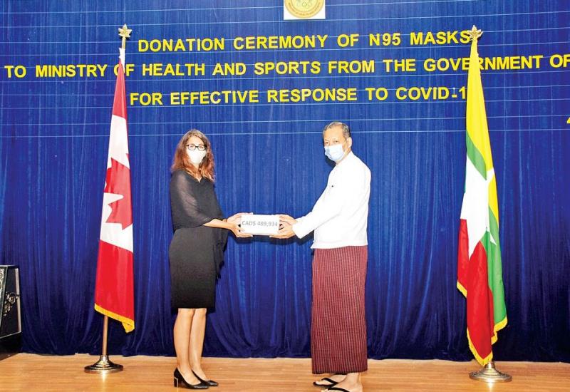 ကျန်းမာရေးနှင့် အားကစားဝန်ကြီး ဌာနသို့ ကနေဒါနိုင်ငံမှ N95 Mask များ ပေးအပ်လှူဒါန်းပွဲအခမ်းအနားကို ယနေ့နံနက် ၁၀ နာရီခွဲတွင် ရန်ကုန်မြို့ ဒဂုံမြို့နယ် ဇီဝကလမ်းရှိ ဆေးသုတေ သနဦးစီးဌာန(ရုံးချုပ်) အစည်း အဝေး ခန်းမ၌ ကျင်းပသည်။