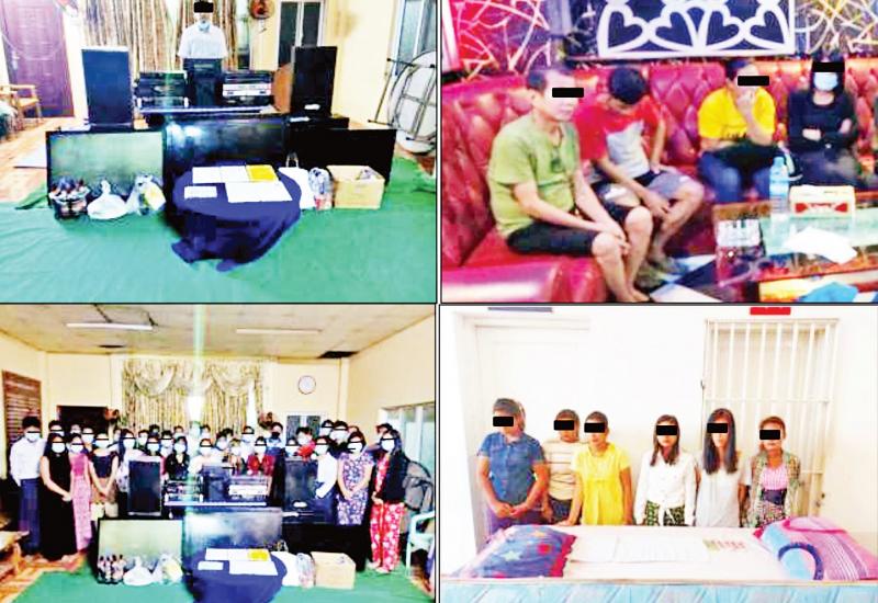 တိုင်းဒေသကြီးနှင့် ပြည်နယ်အသီးသီးတွင် ကိုဗစ်-၁၉ ရောဂါ ကာကွယ်ရေး စည်းကမ်းချက်များအား လိုက်နာခြင်း မရှိသည့် KTV ၊ Bar ၊ အနှိပ်ခန်းနှင့် ပြည့်တန်ဆာလုပ်ငန်း လုပ်ကိုင်နေသည့် နေအိမ်၊ ဆိုင်များ အား ဖော်ထုတ်ဖမ်းဆီး အရေးယူခဲ့ကြောင်း မြန်မာနိုင်ငံရဲတပ်ဖွဲ့၏ သတင်း ထုတ်ပြန်ချက်အရ သိရသည်။