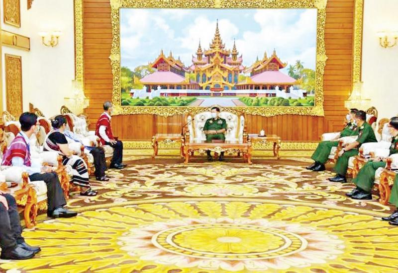 တပ်မတော် ကာကွယ်ရေးဦးစီးချုပ် ဗိုလ်ချုပ်မှူးကြီးမင်းအောင်လှိုင်သည် KNU/ KNLA (PC) ငြိမ်းချမ်းရေးကောင်စီအဖွဲ့ဥက္ကဋ္ဌ စောထော့လေး ဦးဆောင်သောကိုယ်စားလှယ်အဖွဲ့အား ယမန်နေ့ မွန်းလွဲပိုင်းတွင် နေပြည်တော်ရှိ ဘုရင့်နောင်ရိပ်သာဧည့်ခန်းမဆောင်၌ လက်ခံတွေ့ ဆုံသည်။