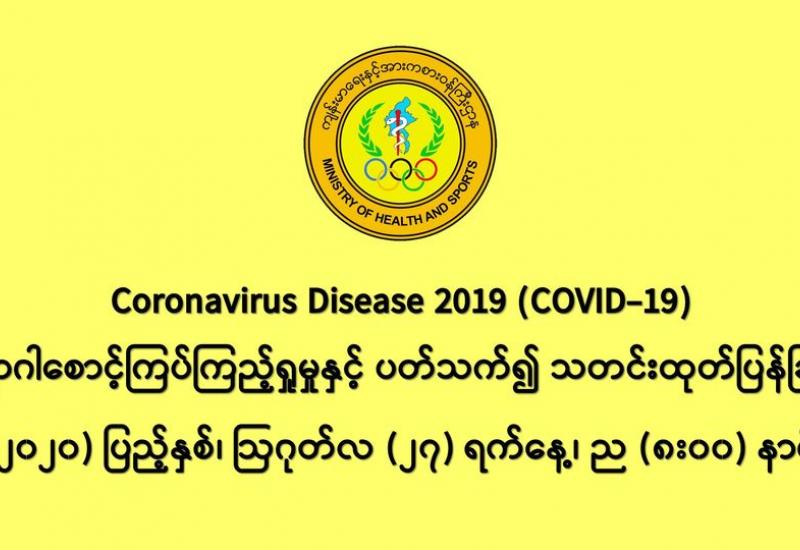 ၁။ (၂၇-၈-၂၀၂၀) ရက်နေ့အတွက် COVID-19 ရောဂါ ဓာတ်ခွဲစစ်ဆေးရာတွင် -